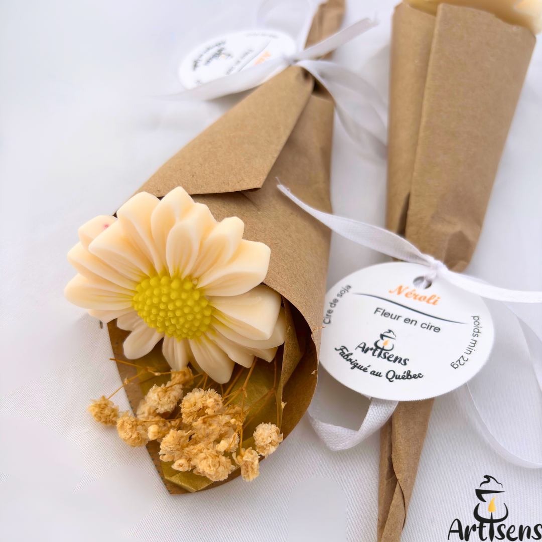 Ajoutez une touche d'élégance et de parfum à votre intérieur avec nos fleurs en cire artisanales. Délicatement façonnées à la main, elles se déclinent en deux duos de couleurs et de senteurs envoûtantes :